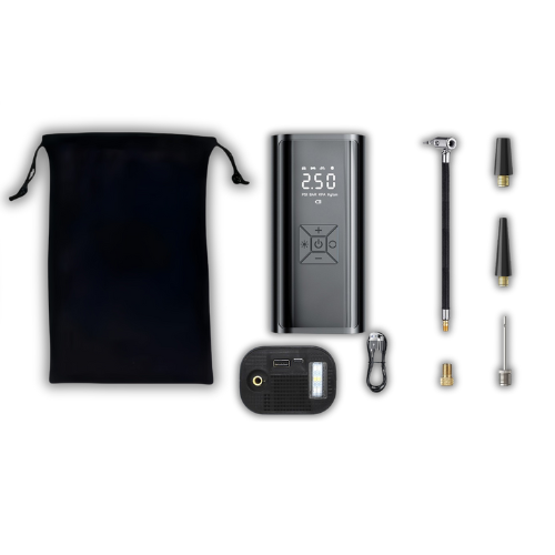 ✔️ Kompresor Drivio24 ✔️ Kryt na odkladanie ✔️ Nafukovacia hadica ✔️ Ihla na guľôčku ✔️ Adaptér na bicykel ✔️ Adaptér Presta ✔️ Špičky na matrac a hračky ✔️ Kábel USB-C ✔️ Používateľská príručka
