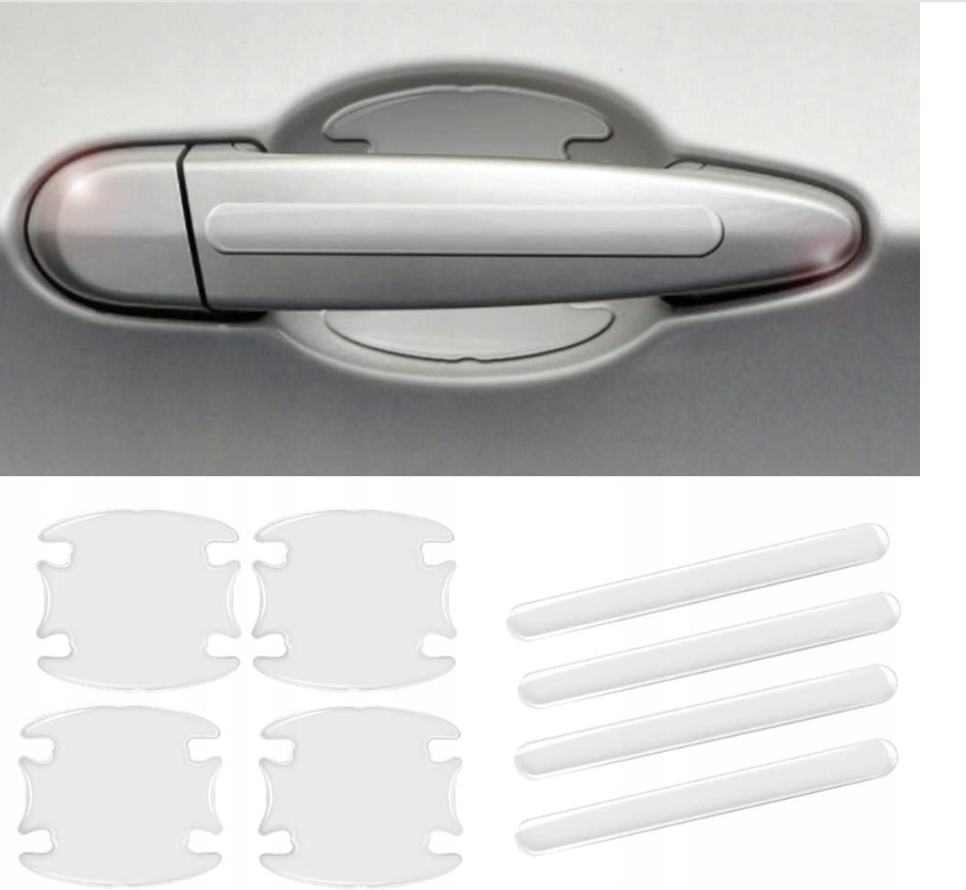 Sada ochranných nálepiek pod dvierkové kľučky, na dvere a spätné zrkadlá – bezfarevné (8 ks)